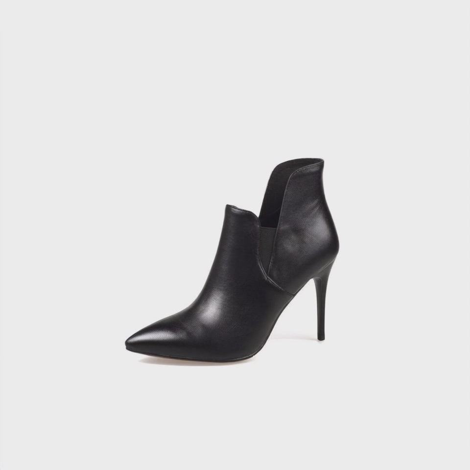 Leather Asymmetrical Ankle Boots – Elegant Pointed Stiletto Boots