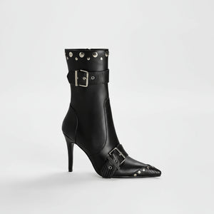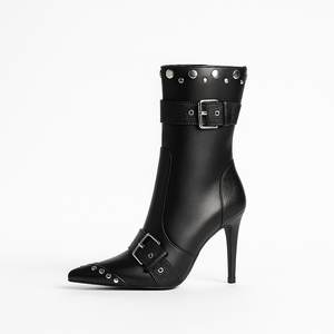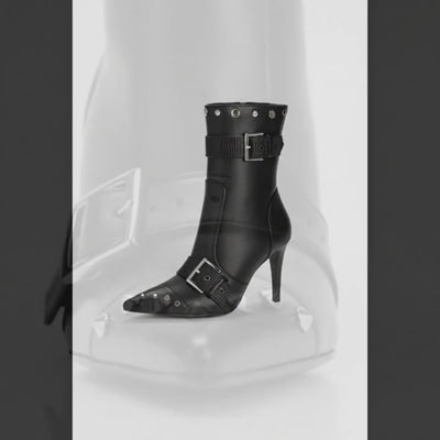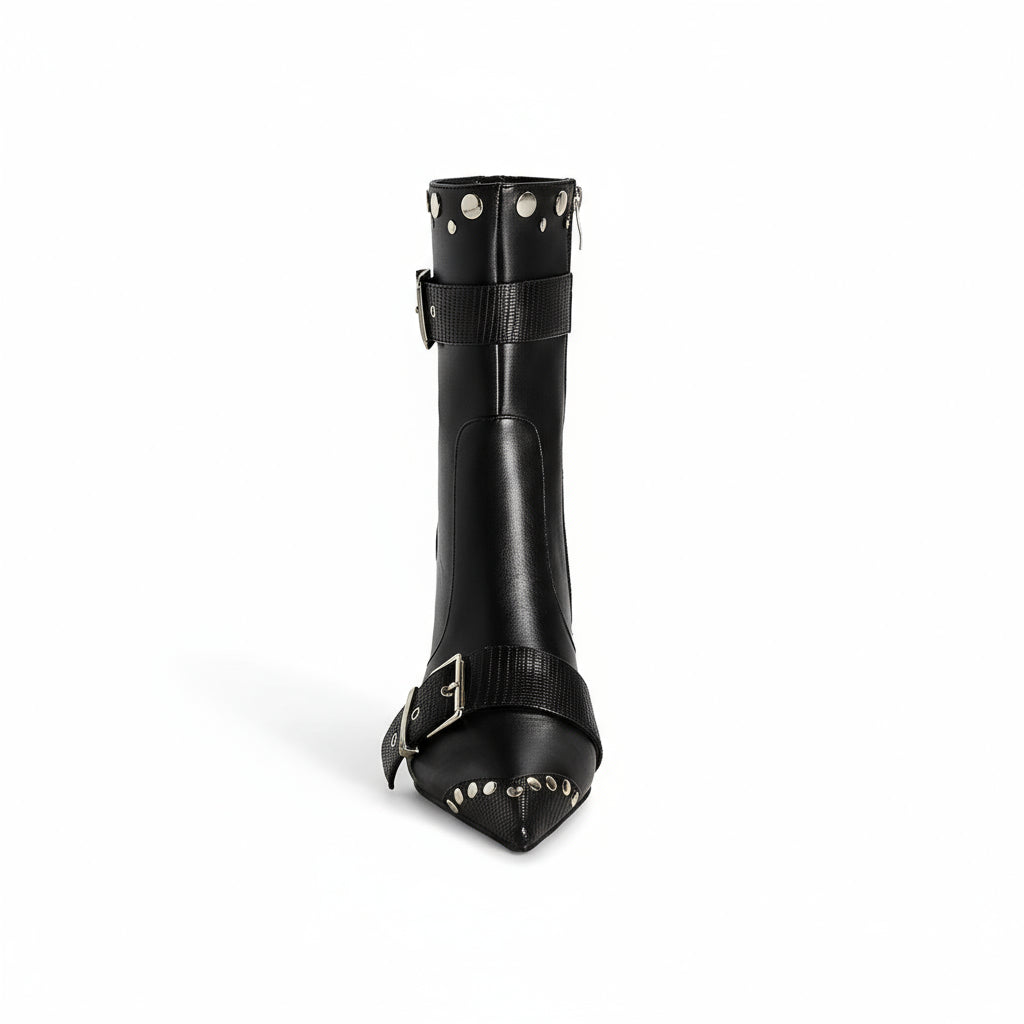 Unleash your inner vixen with the Convertible Double Buckle Black Pointed Toe Boots, a dangerously seductive stiletto that dares to dominate.