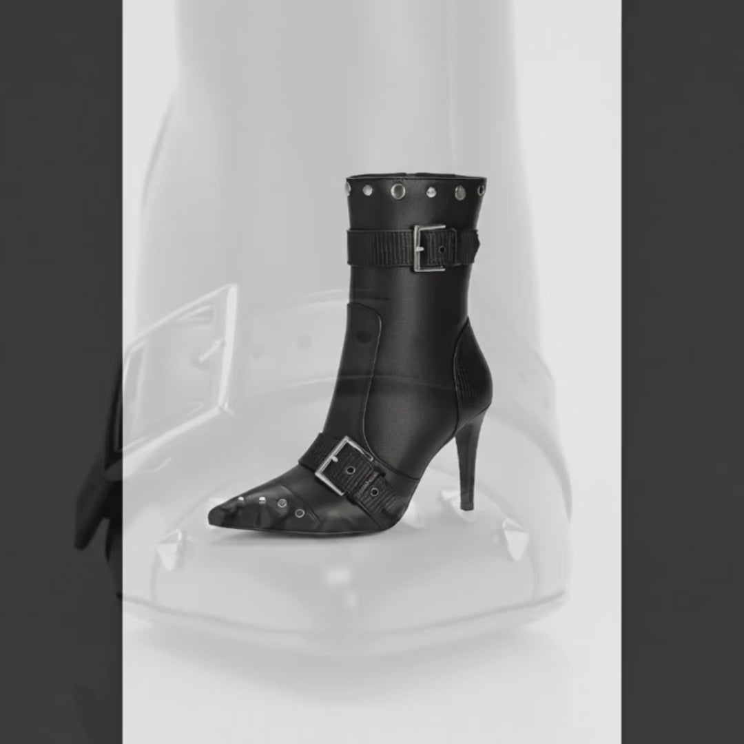Convertible Double Buckle Black Pointed Toe Boots